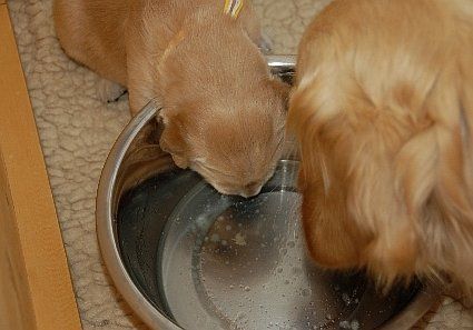 Alle haben ordentlich zugenommen und halten Dana ganz schön auf Trab. Die Kontroll-Röntgenaufnahme hat gezeigt, daß alles bestens ist. Aus Interesse habe ich sie auch noch auf die Waage gestellt und von den 9 kg Gewichtszunahme sind 7 kg schon wieder herunter ;-))